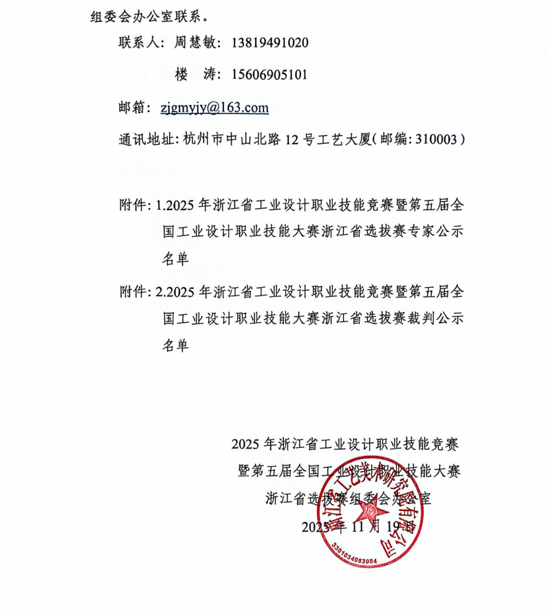 【職業(yè)技能大賽】關(guān)于公布2025年浙江省工業(yè)設(shè)計職業(yè)技能競賽暨第五屆全國工業(yè)設(shè)計職業(yè)技能大賽浙江選拔賽各賽項舉辦時間、地點的通知